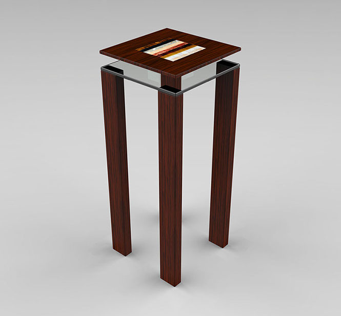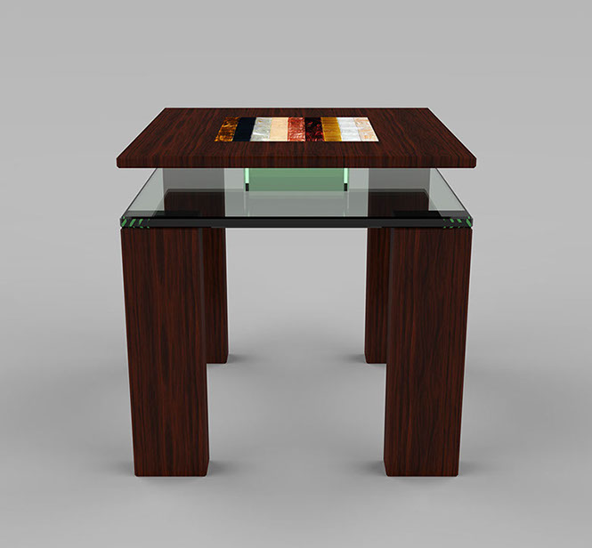 Rare wood essence, BISAZZA ™ mosaic and 10mm glass.