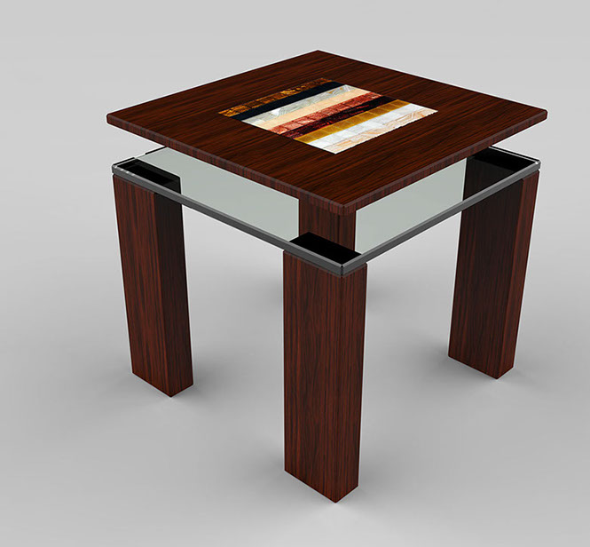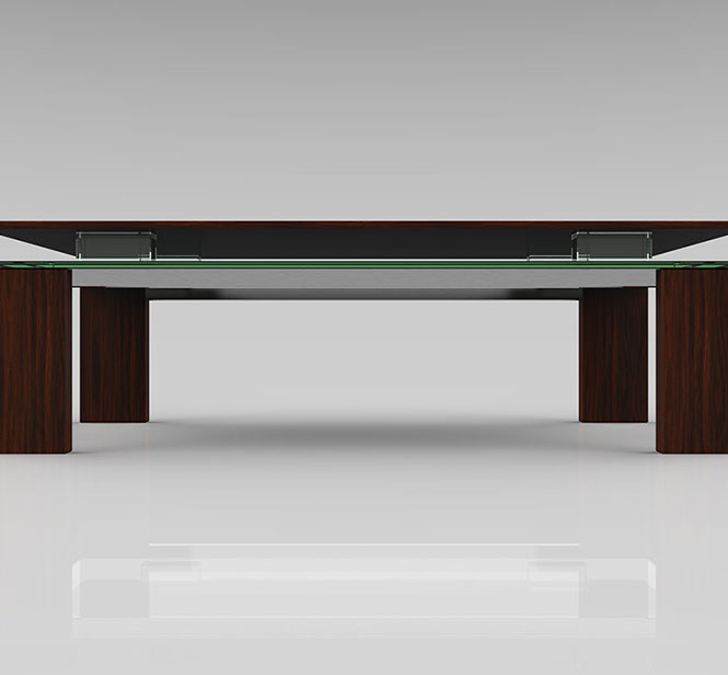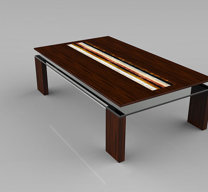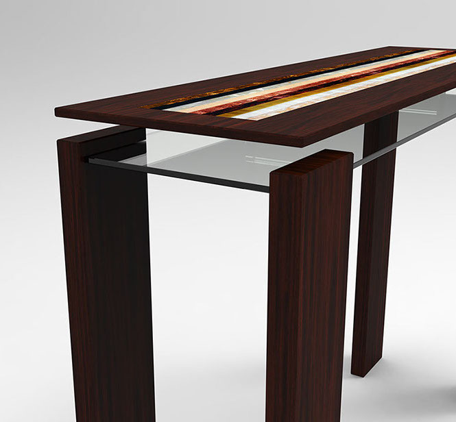 Rare wood essence, BISAZZA ™ mosaic and 10mm glass.